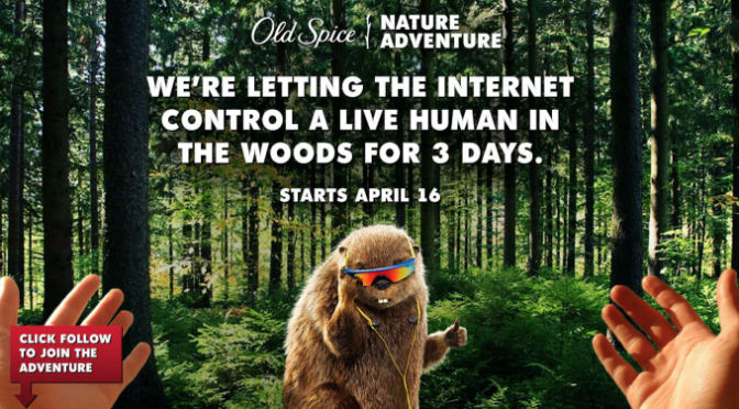 TechCrunch has reported that Procter & Gamble is working with Twitch to launch “The Old Spice Nature Adventure.” For three days, starting April 16, Twitch users will be able to control a real man in a real forest full of joke traps, all by screaming commands into the chat. The “adventure” is going to get pretty weird, the campaign’s said to feature talking trees, and much more importantly arm wrestling with a bear. A fake bear, but a bear nonetheless.